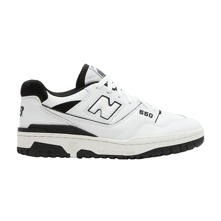 The New Balance 550 ‘Oreo’ updates the vintage ‘80s hoops shoe with an essential two-tone design. The sneaker is clad in layered white leather with black textile construction on the padded collar. A nylon tongue offers improved breathability, while a TPU heel clip delivers rearfoot support. Branding elements include a raised ‘N’ on the quarter panel and a flying NB logo embossed on the heel overlay. The low-top rides on a rubber cupsole, featuring an exposed EVA wedge on the medial sidewall.