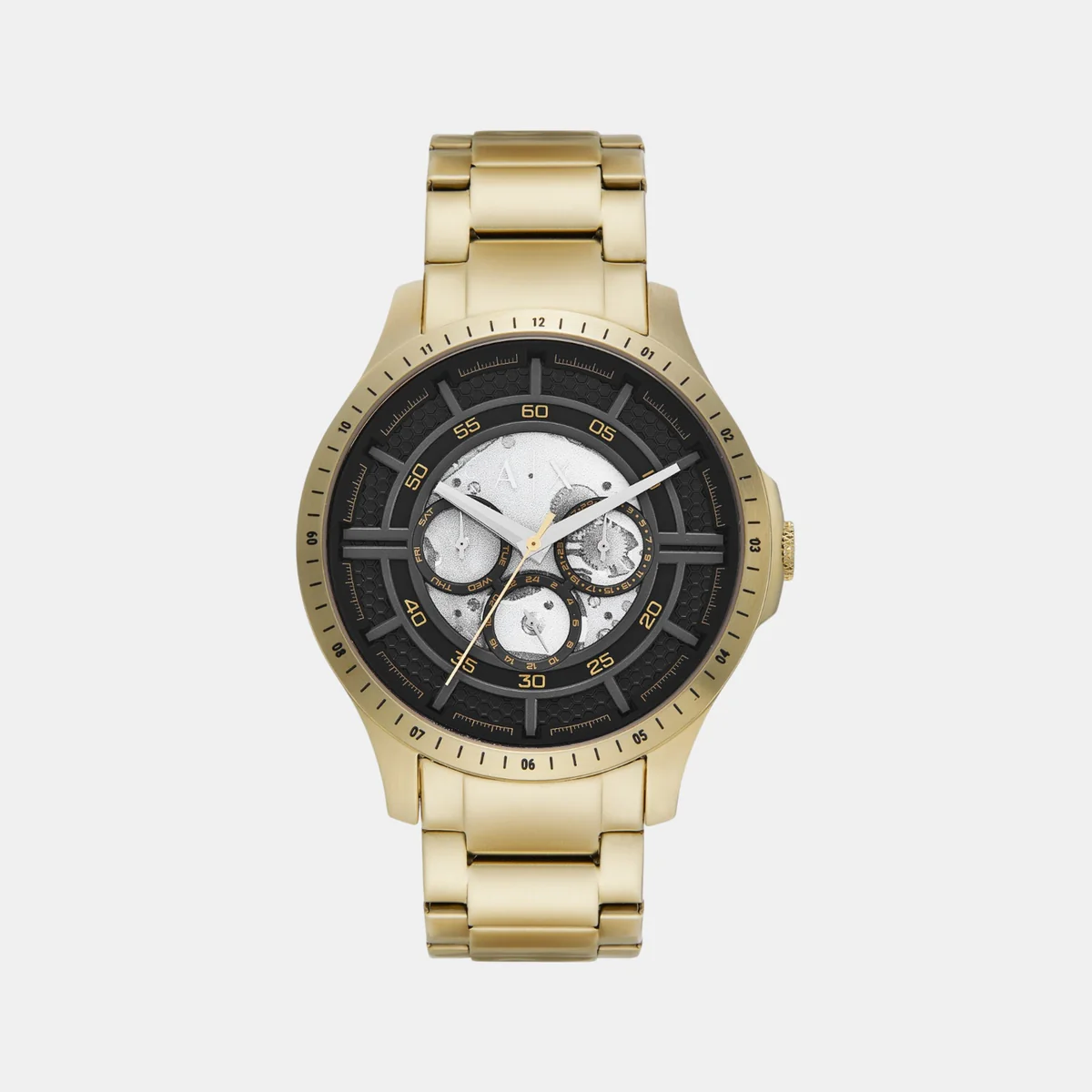 Men Quartz Black Dial Multi-Function Stainless Steel Watch AX2461
