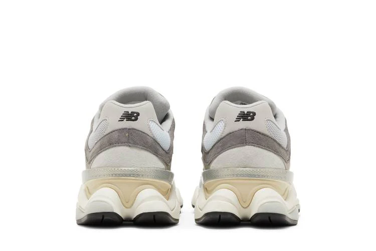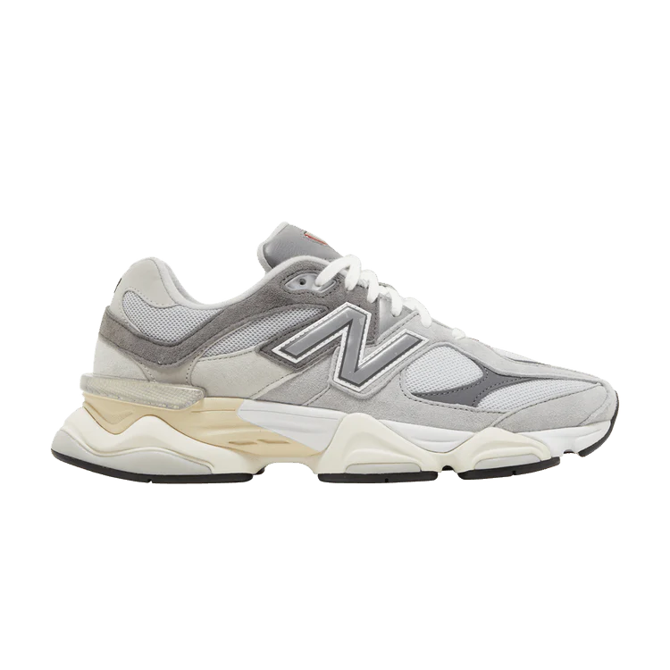 The sneaker is clad in layered white leather with black textile construction on the padded collar. A nylon tongue offers improved breathability, while a TPU heel clip delivers rearfoot support. Branding elements include a raised ‘N’ on the quarter panel and a flying NB logo embossed on the heel overlay. The low-top rides on a rubber cupsole, featuring an exposed EVA wedge on the medial sidewall.